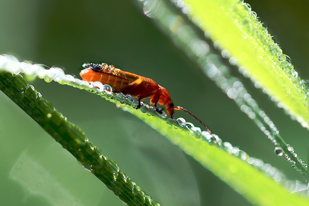 Пришла с утра водички попить. Такой обильной росы очень давно не видел, вымок с утра по пояс